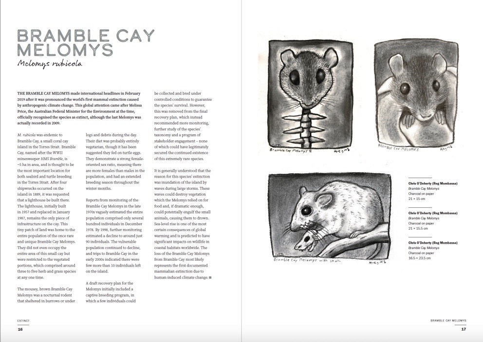 "Notwithstanding the eloquence and insightfulness of the words, it is the artworks that give this book its power, pathos and beauty; its ability to move us. Each of the 39 extinct species is portrayed in a manner that gives some sense of its essence."